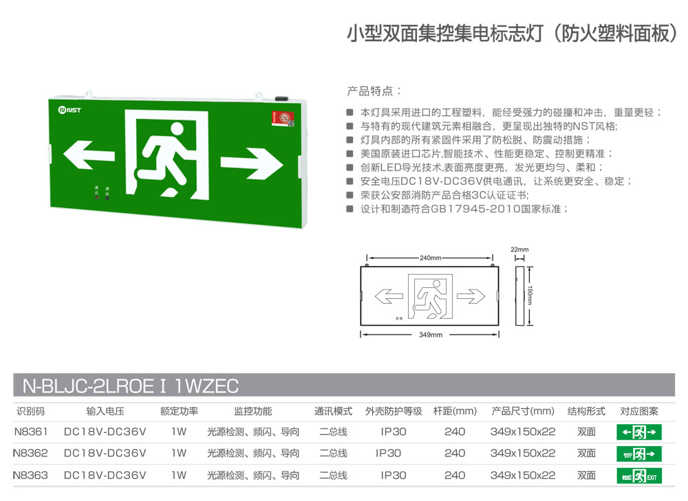 小型双面集控集电标志灯(防火塑胶面板)