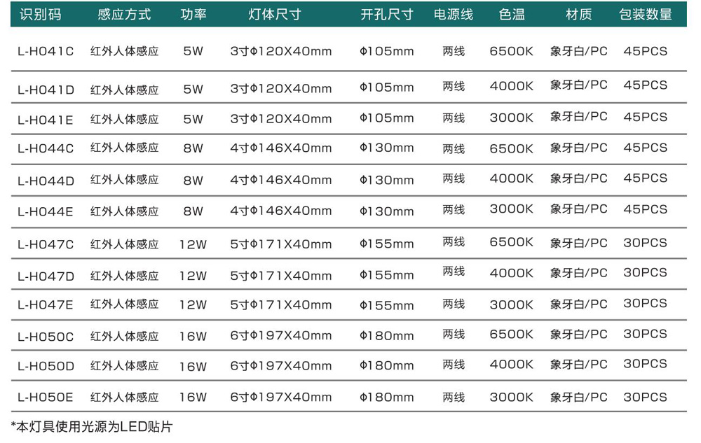 嵌顶PC筒灯(红外人体感应)